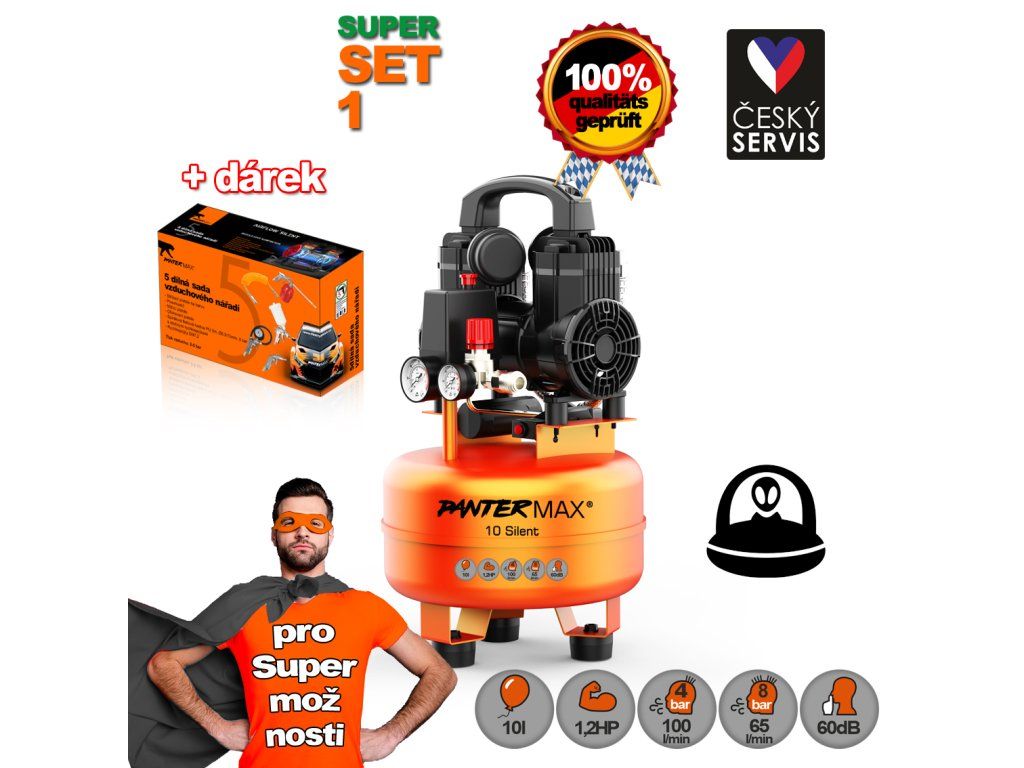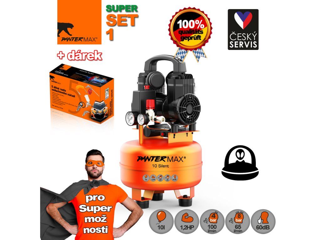 PANTERMAX® Super tichý bezolejový kompresor AirFlow® 10 SILENT SET1
