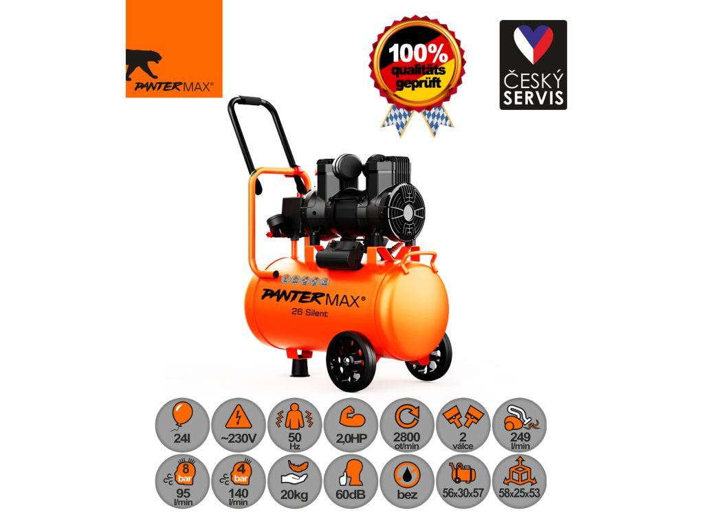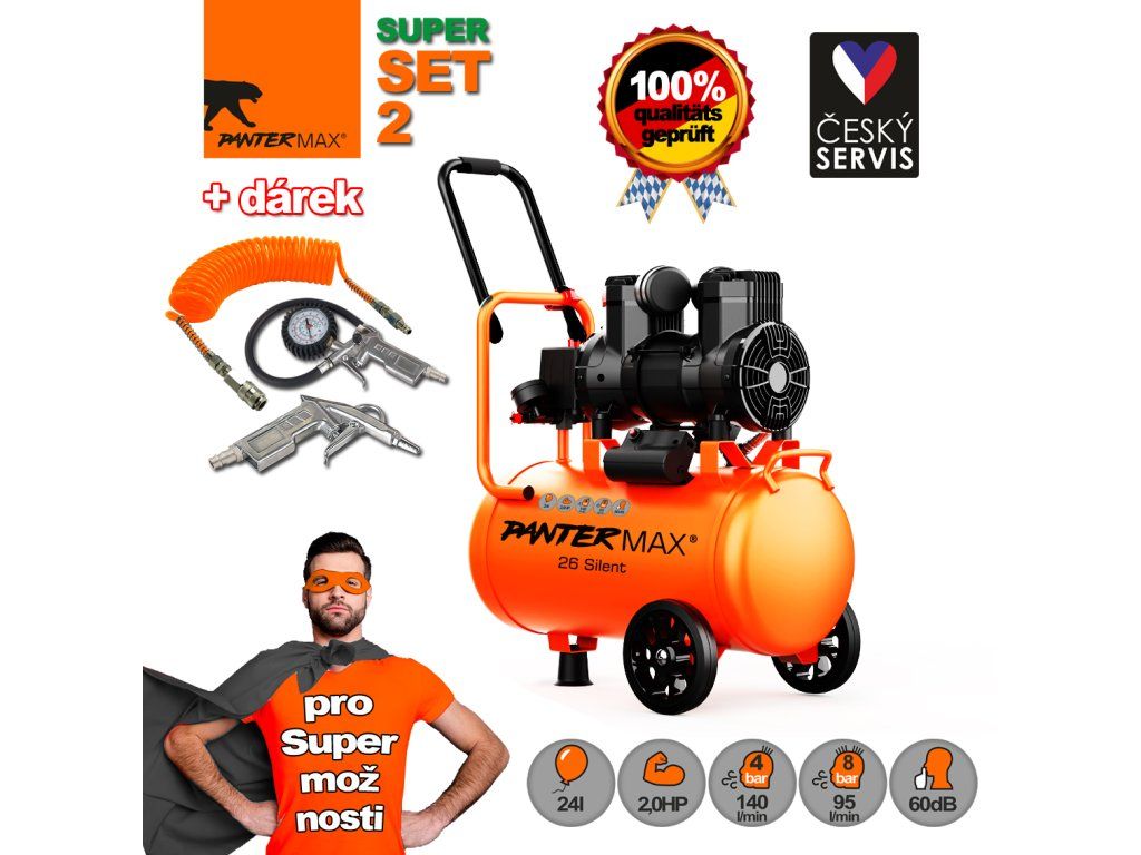 PANTERMAX® Super tichý bezolejový kompresor AirFlow® 26 SILENT SET2