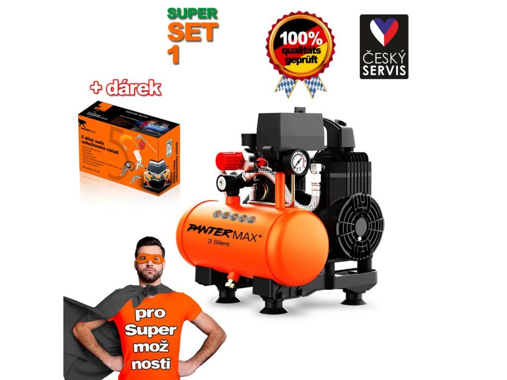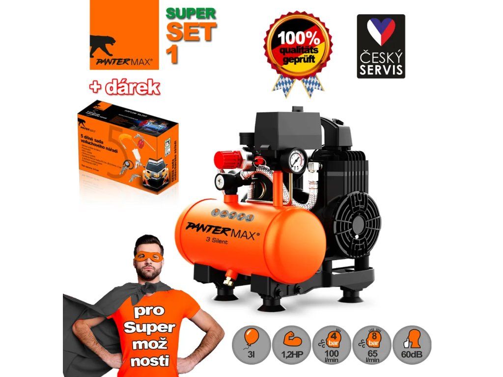 PANTERMAX® Super tichý bezolejový kompresor AirFlow® 3 SILENT SET1