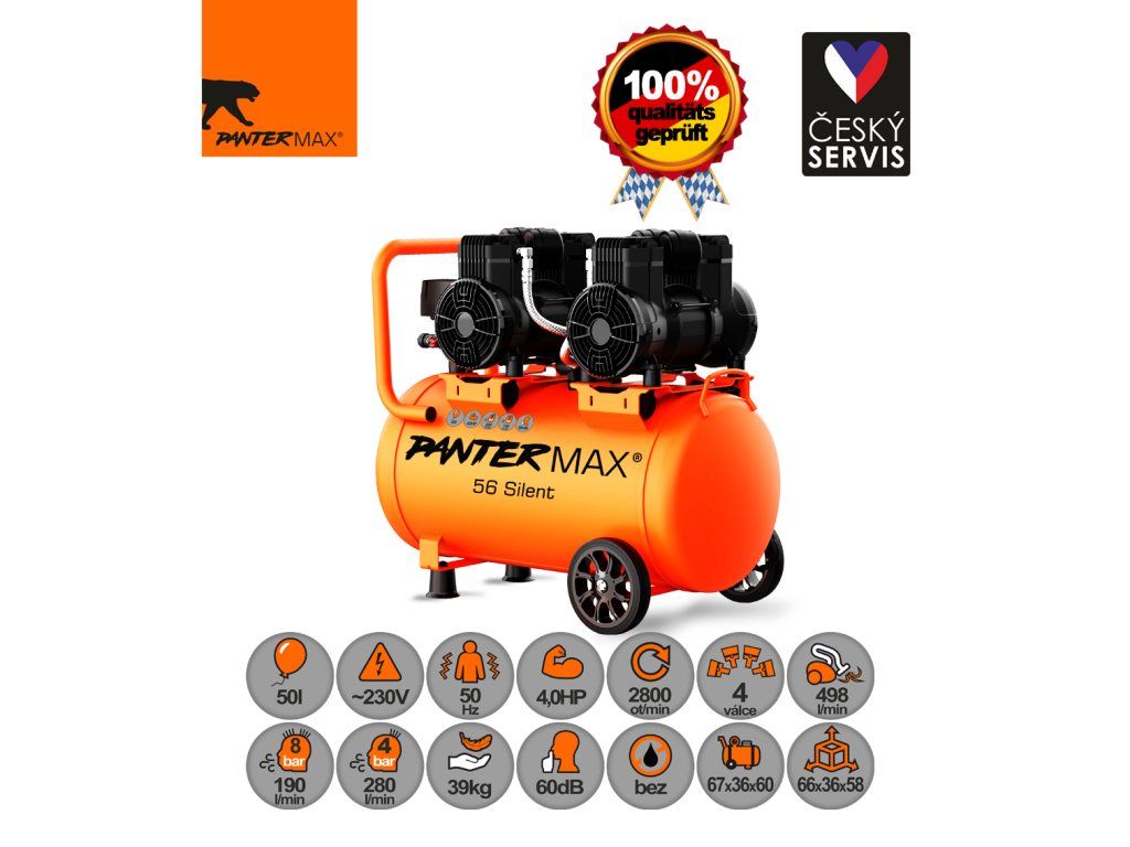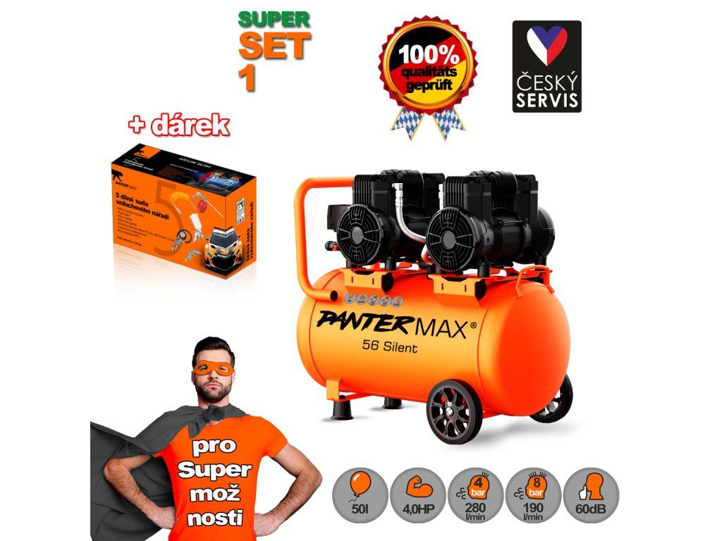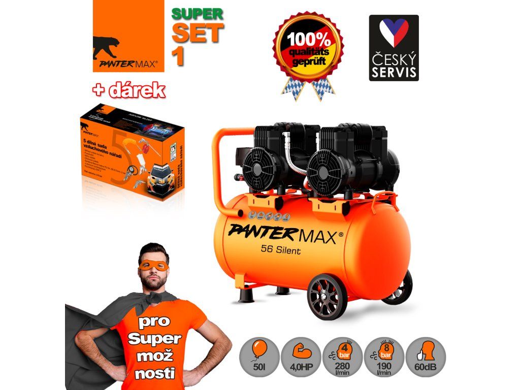 PANTERMAX® Super tichý bezolejový kompresor AirFlow® 56 SILENT SET1