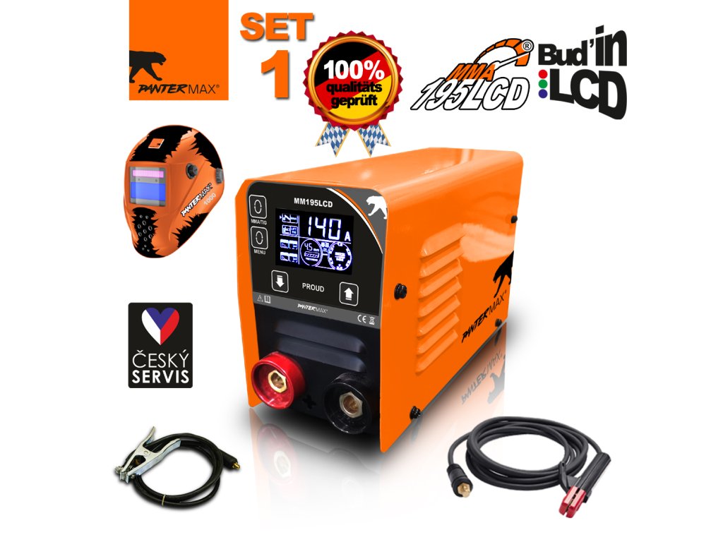 Invertorová zváračka PANTERMAX® MMA195LCD sa používa na ručné zváranie konštrukčnej ocele jednosmerným prúdom s obalenými elektródami (metóda MMA). Umožňuje tiež zváranie metódou LiftTIG. Ide o invertorový prístroj vyrobený z technologicky najvyspelejších komponentov, ktorý je vybavený technológiou IGBT. Napájací zdroj je vybavený nastaviteľnými funkciami ARC FORCE a automatickými funkciami ANTI STICK a HOT START. Má tiež funkciu VRD s možnosťou vypnutia.